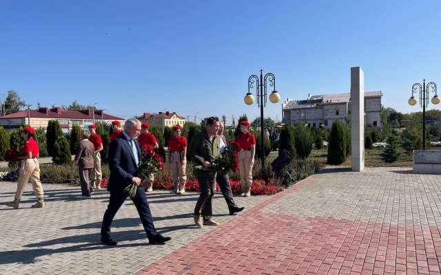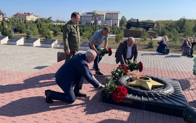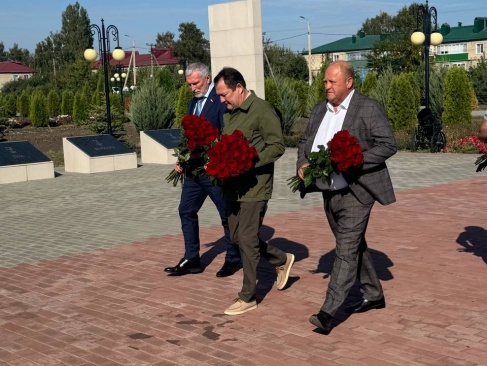 Алексей Журавлев и Максим Егоров возложили цветы к монументу и почтили память павших героев.