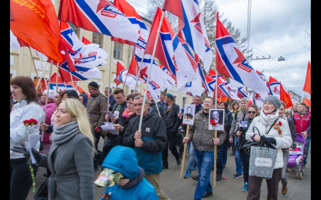 С песнями под гармошку, с флагами в руках и георгиевскими лентами на груди, «родинцы» прошли от центральной площади города к Вечному огню и возложили цветы у мемориала на берегу реки Вятки. Многие из них с портретами родственников – участников войны двигались в колонне «Бессмертного полка».