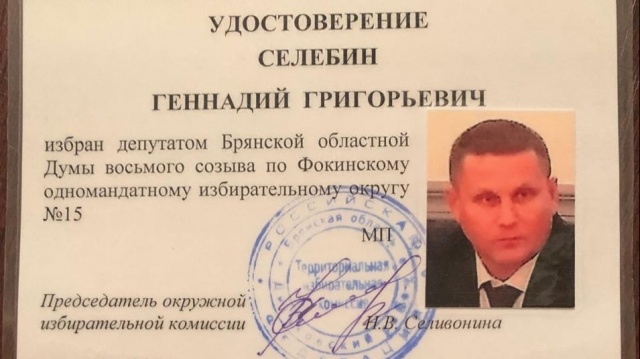 Геннадию Селебину вручено удостоверение об избрании депутатом Брянской облдумы