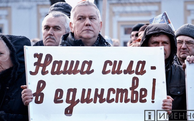 Ораторы призывали к сплочению русского и украинского народов, выступая против кровопролития.