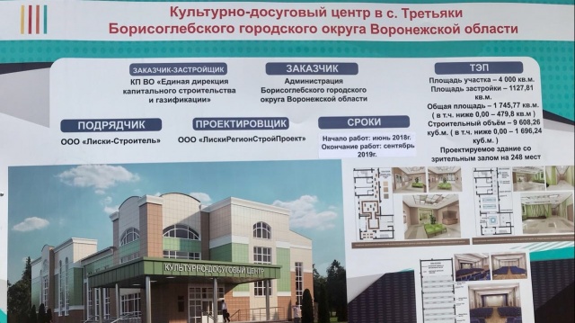 Так, члены делегации осмотрели ход строительства нового здания культурно-досугового центра в селе Третьяки Борисоглебского района.