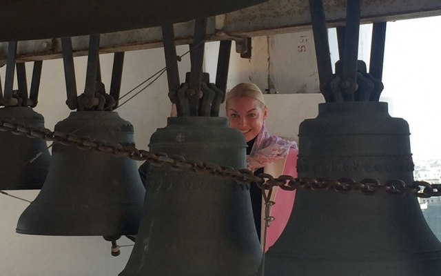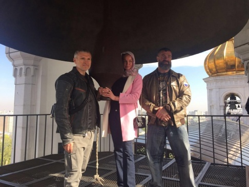 Алексей Журавлёв, Анастасия Волочкова и Сергей Бадюк на колокольне Храма Христа Спасителя.