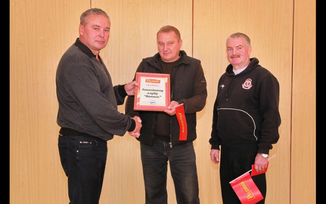 Церемонию награждения, а она проходила в Сосновском ДК имени 70-летия Октября, открыл председатель Совета Регионального отделения партии "РОДИНА" в Кировской области Сергей Кашин, поблагодарив ХК "Витязь" за развитие спорта и патриотическое воспитание молодёжи. Почетную грамоту и денежную помощь на развитие клуба капитану команды Александру Черепанову вручили председатель Совета местного отделения партии Александр Михеев и руководитель местного отделения партии на левобережье района Сергей Машанов. А глава администрации Сосновского городского поселения Денис Ступин, также присутствующий на церемонии, пожелал хоккеистам новых спортивных достижений.