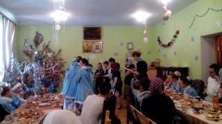 Ребята подготовили праздничный концерт: пели рождественские песни, читали стихотворения, играли на музыкальных инструментах. Педагоги воскресной школы провели для ребят викторины и игры, и также рождественские колядки. В празднике также приняли участие воспитанники Центра дополнительного образования "ПОБЕДА".