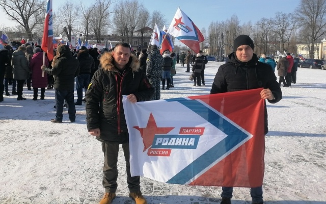 В митинге приняли участие член Политсовета Партии "РОДИНА" Вячеслав Владимиров, депутат Совета народных депутатов Поворинского муниципального района Воронежской области Максим Гусев и другие партийцы.